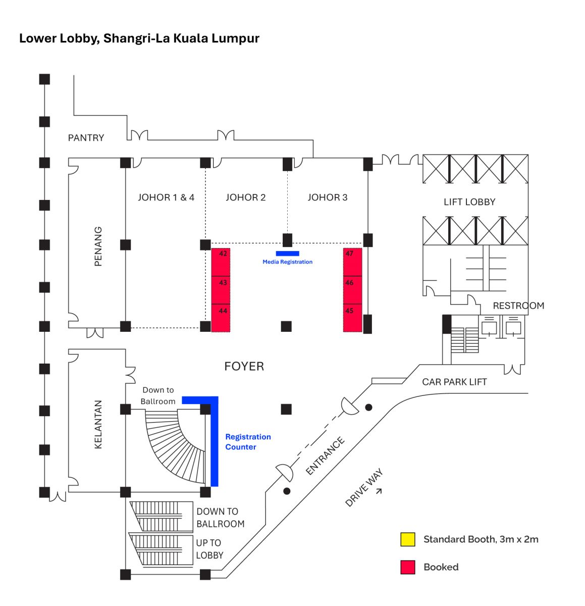 | Standard Booth Lower Lobby (Yellow) | Space Only 3m(W) x 2m(D) | MYR 16,000.00 / USD 3,878.00 |